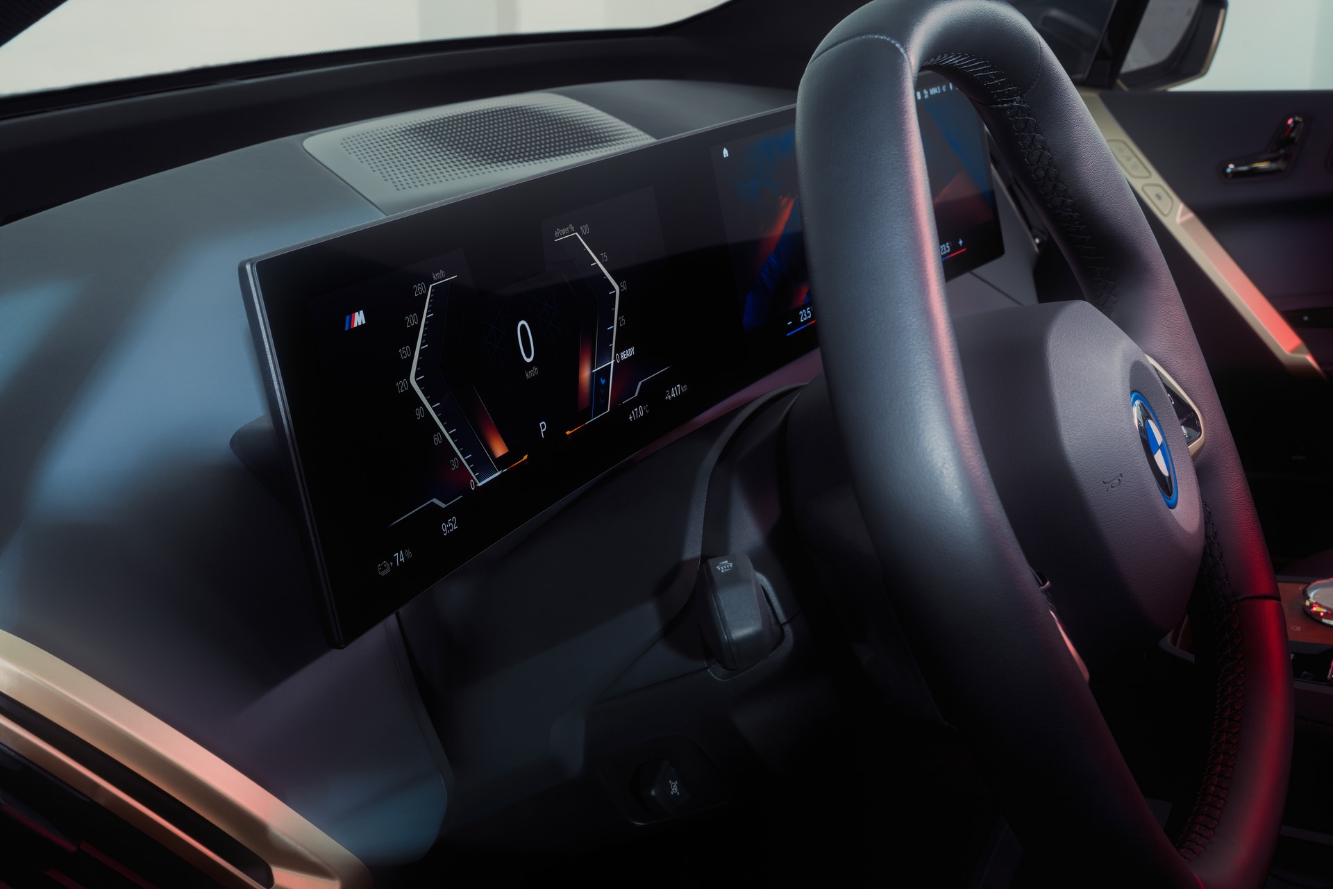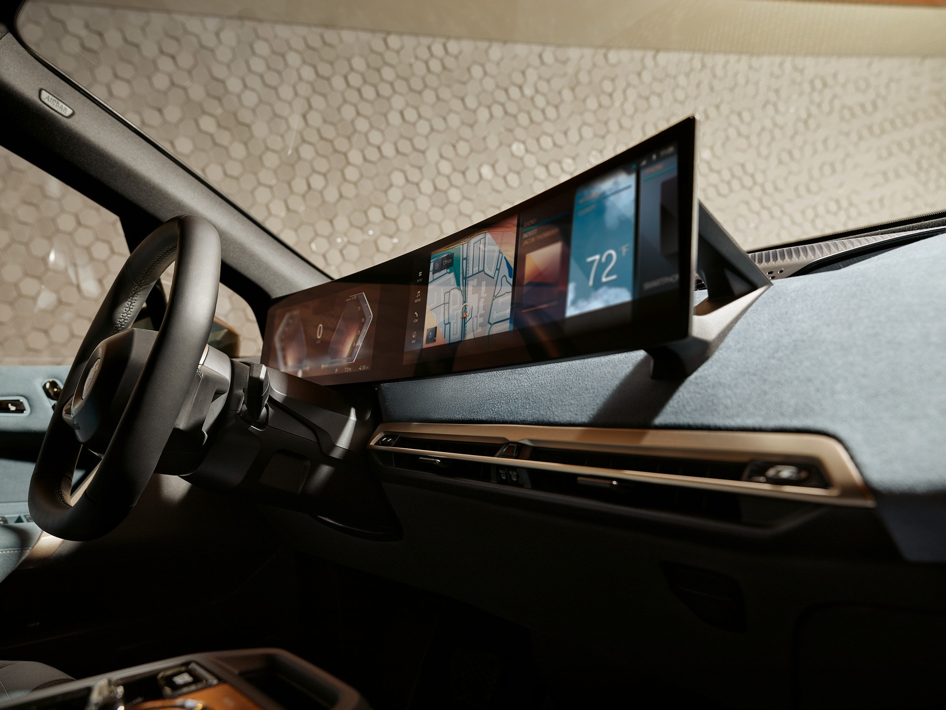 A hidden world of interaction and functionality is at your fingertips in the First-Ever BMW iX. Shy Tech features are subtle, yet highly engaging - like the sound system cloaked by acoustic fabric, radiant heat in the dash and door panels, and haptic controls concealed by open-pore wood trim. | |